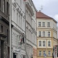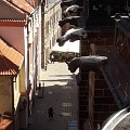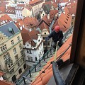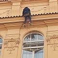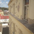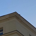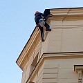 Výškové práce při montážích zábran proti holubům na problematické římsy KÚ v Praze 1 Malostranské náměstí.