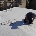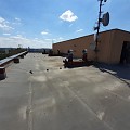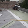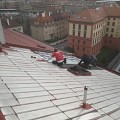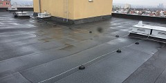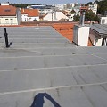 Další opravy střech v Praze. Zde jsme kompletně měnili krytinu plochých střech, která nesprávnou pokládkou totálně zdegradovala. Výškové a stavební práce Praha Nyk