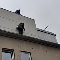 Opravy střechy a oplechování v Praze na jižním městě. Výškové práce, které jsme zde prováděli byli opravdu náročné a vyžadovali velké zkušenosti. Hrozilo,že zde upadne velká část oplechované fasády a způsobí velké škody. Naštěstí vše dobře dopadlo a nám se podařilo dát vše do pořádku. Výškové práce Praha NYK