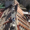 Náročné výškové práce a opravy střechy na Praze 1 v Myslíkově ulici.Opravovat tyto prjzové střechy je jedna z nejsložitějších čiností . My to ale zvládneme. Výškové práce Praha Nyk.