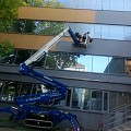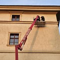 Výškové práce pomocí vysokozdvižné plošiny při opravách havárie a montážích zábran proti holubům. Nyk výškové práce Praha.