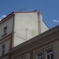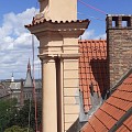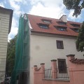 Výškové práce při opravě střech bytového domu na Praze 1 v ulici na Tržišti. Tyto výškové oprácejsme prováděli v samém centru starého města. Výškové práce NYK