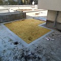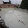 Poškozená terasa a její izolace na obytném domě v Praze 7. Kompletně jsme opravili a odstranili zatékání do spodních bytů pomocí pokládky měkčeného PVC. Fólie je pochozí a lehce se udržuje. Doporučujeme. Nyk Výškové a stavební práce.