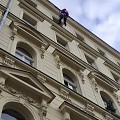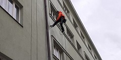 Mytí fasády pomocí horolezecké techniky. Tyto výškové práce jsme prováděli v Praze 3 na Žižkově.