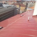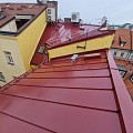 Nyk Výškové práce Praha provedli další kompletní opravu střechy v Praze v Opatovické ulici Praha 1. Falcovaný barvený pozinkovaný plech nahradil staré šablony.