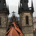 Opravy střechy a klempířských prvků na Týnském chrámu v Praze. Tyto výškové práce si opravdu vychutnáváme. Nyk Výškové práce Praha.