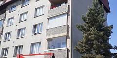 Oprava teras bytového domu v Praze 2 v ulici Na Zbořenci. Na tyto opravy bylo použito měkčené PVC. Nyk Výškové a stavební práce.