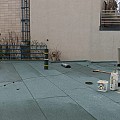 Další opravy střech v Praze. Zde jsme kompletně měnili krytinu plochých střech, která nesprávnou pokládkou totálně zdegradovala. Výškové a stavební práce Praha Nyk