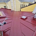 Nyk Výškové práce Praha provedli další kompletní opravu střechy v Praze v Opatovické ulici Praha 1. Falcovaný barvený pozinkovaný plech nahradil staré šablony.