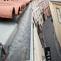 Výškové práce při opravě střech bytového domu na Praze 1 v ulici na Tržišti. Tyto výškové oprácejsme prováděli v samém centru starého města. Výškové práce NYK
