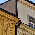 Výškové práce při mytí fasády a římsy bytového domu v Praze 5 na Smíchově. Fasádu a římsu jsme umyli a poté napustili hydrofobizačním přípravkem. Výškové práce Praha Nyk