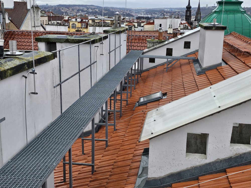 Každoroční preventivní prohlídka střechy Myslíkova Praha 1 a její drobné opravy jsou důležité. Obzvlášť,když se jedná o takhle komplikovanou střechu, kde jsou výškové práce poviností. . Nyk-Výškové práce Praha