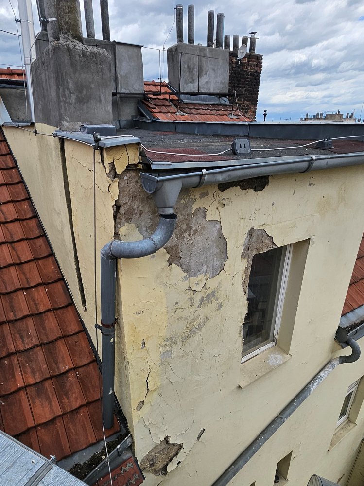 Právě provádíme celkovou opravu střechy činžovního domu v Praze v ulici Ruská. Dlouhodobě zatékalo do několika bytů a nezbývalo než udělat střechu kompletně novou.