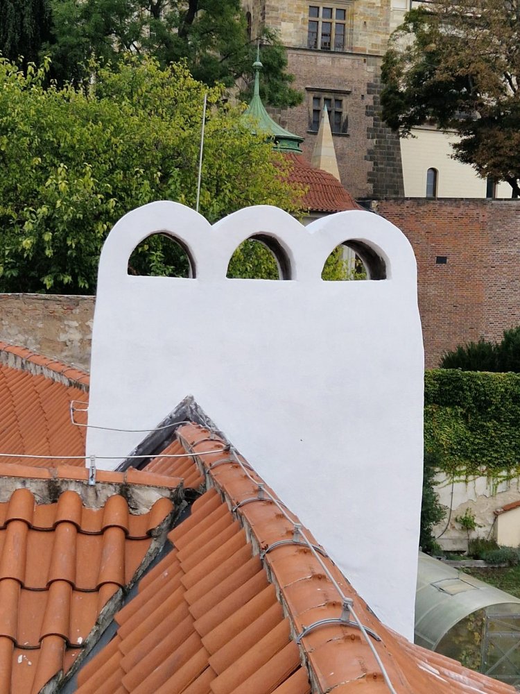 Další opravy historických komínů a střech. Tyto výškové práce provádíme přímo pod Pražským hradem v ulici Na Tržišti.