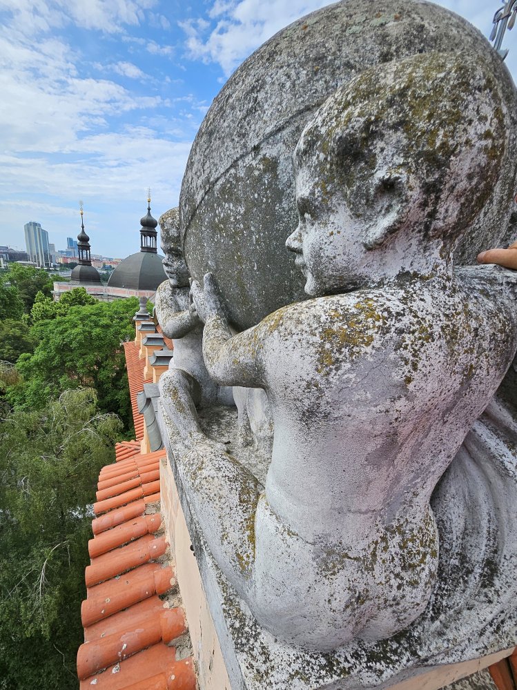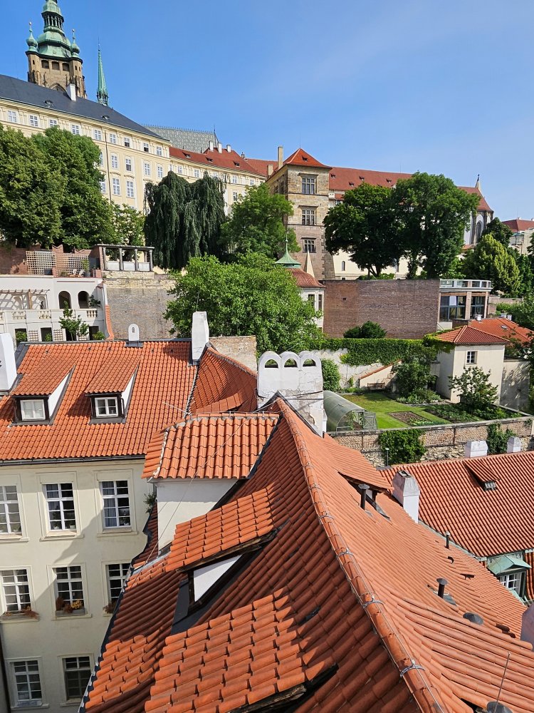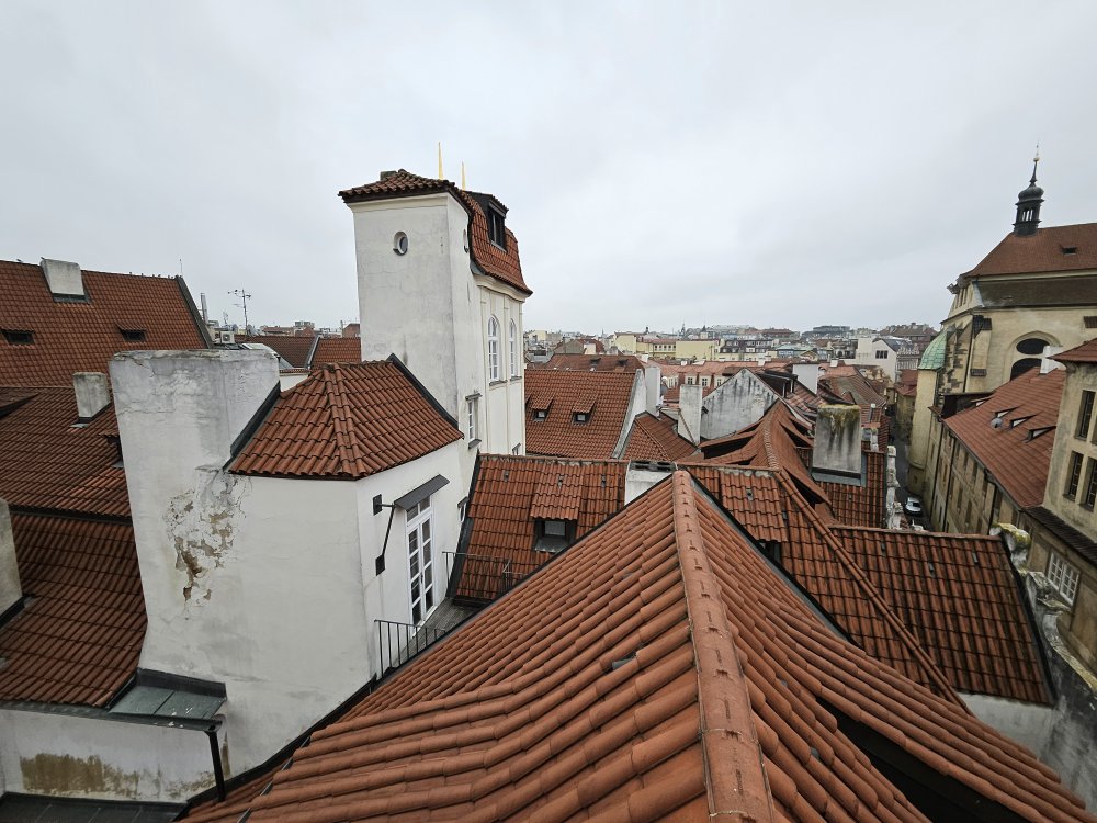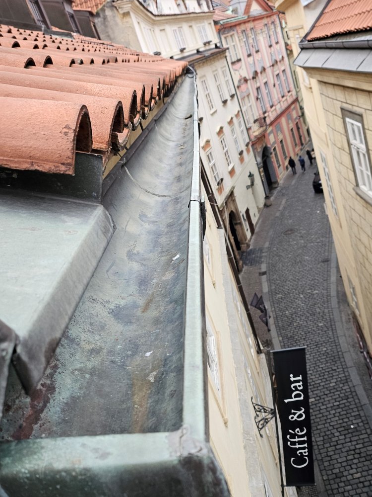 Opravy historických komínů a střechy v samotném srdci staré Prahy. Tyto výškové práce