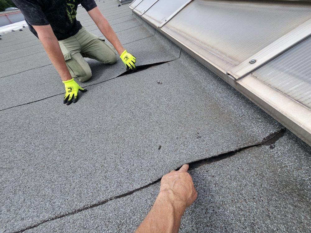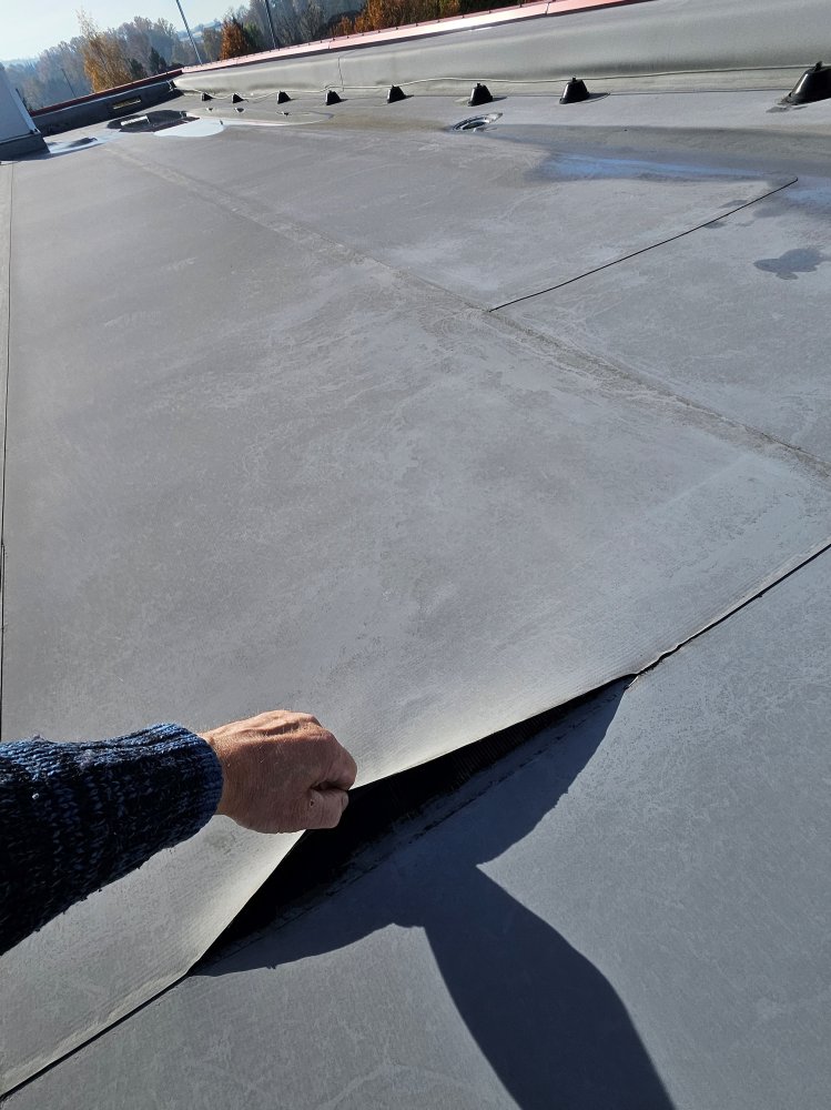 Kompletní prohlídka plochých střech bytového domu v Praze 4 Modřanech a následné opravy fólie z měkčeného PVC od Fatrafolu. Nyk Výškové a stavební práce Praha