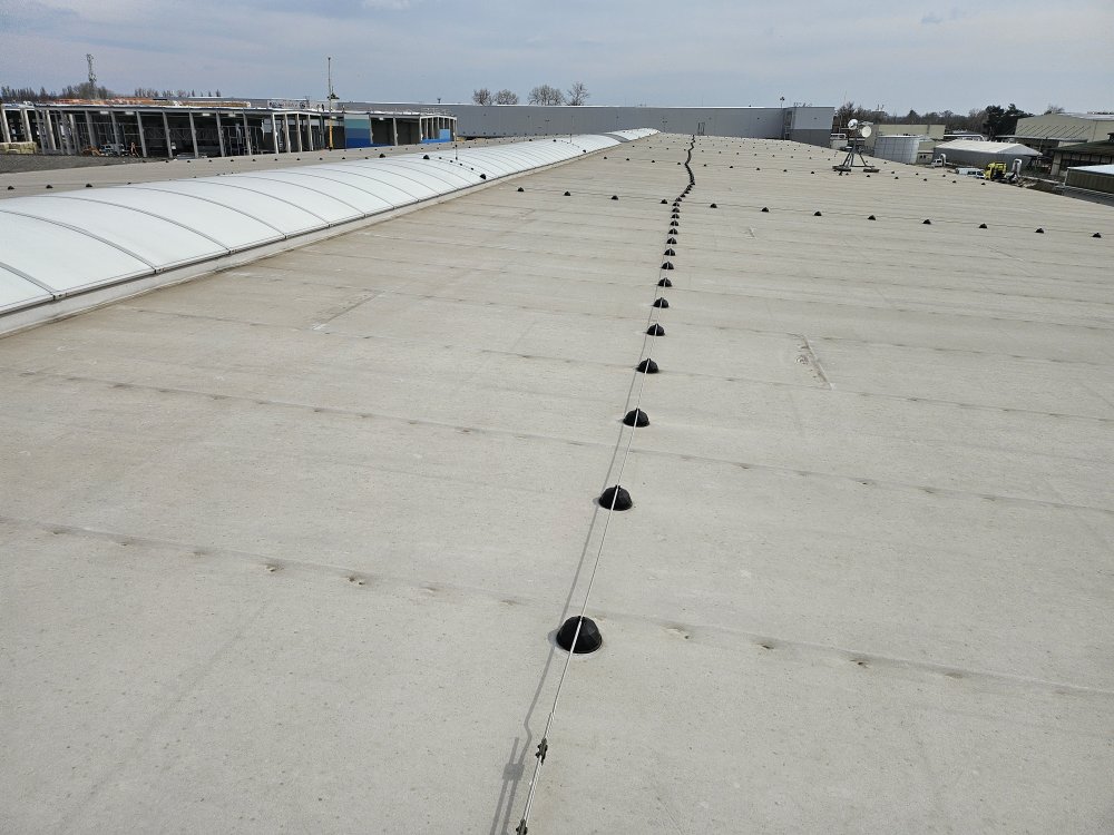 Provádíme kontrolu a opravy plochých střech na halách a budovách DPD v Říčanech. Nyk Výškové a stavební práce Praha