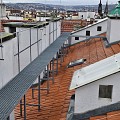 Výškové práce při opravě střech bytového domu na Praze 1 v ulici na Tržišti. Tyto výškové oprácejsme prováděli v samém centru starého města. Výškové práce NYK